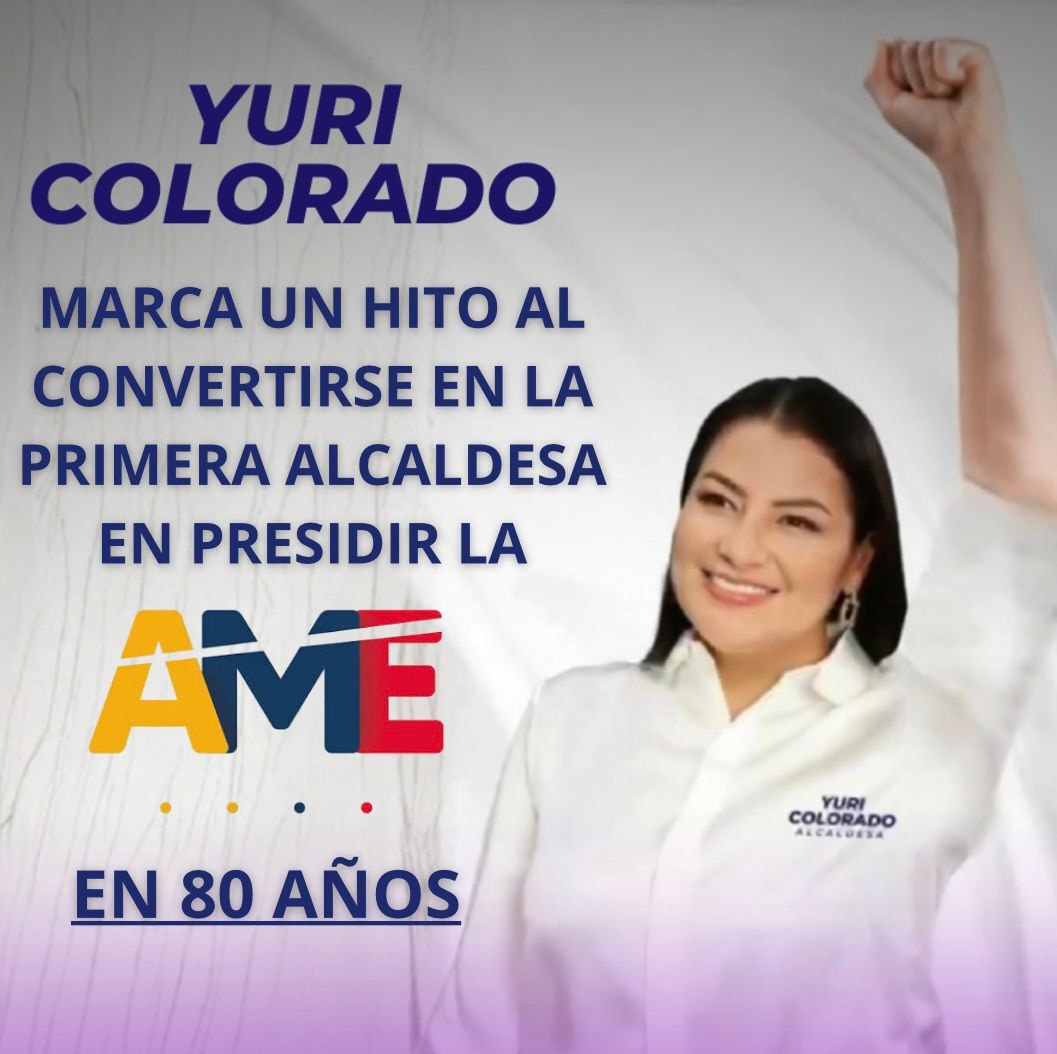 Nuestra representante Yuri Colorado, primera alcaldesa en presidir la Asociación de Municipalidades Ecuatorianas en 80 años. En un hecho histórico para el municipalismo ecuatoriano, la alcaldesa de Muisne Yuri Colorado fue elegida como presidenta de la Asociación de Municipalidades Ecuatorianas (AME), convirtiéndose en la primera mujer en asumir esta digna...
