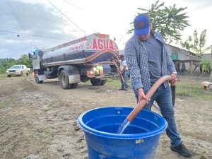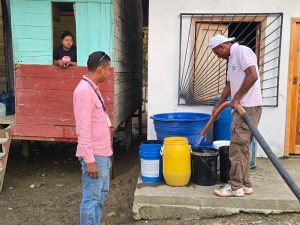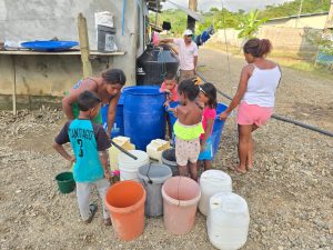 Entrega de agua potable a familias afectadas.