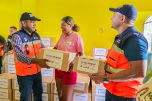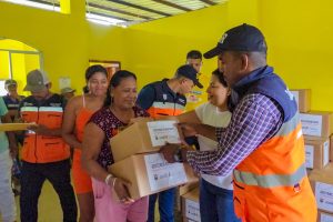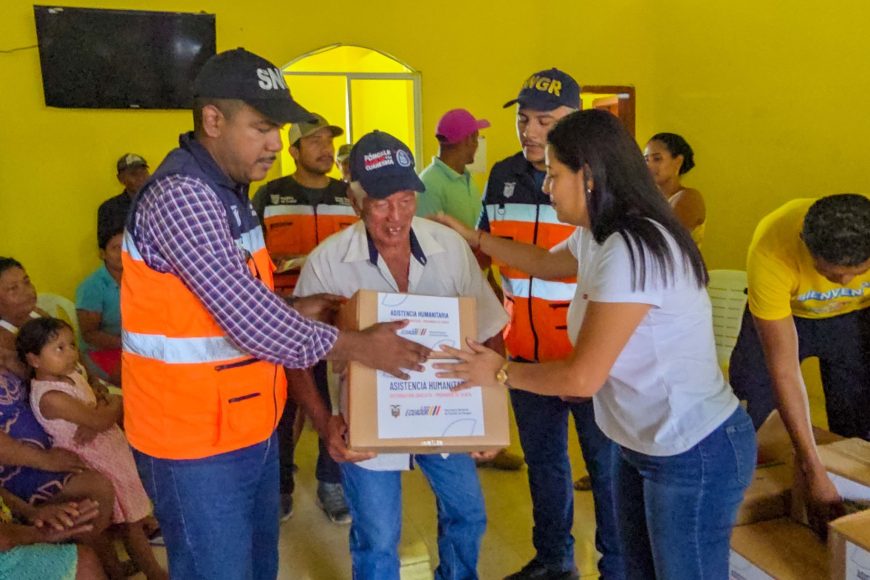 La alcaldesa del cantón Muisne, Yuri Colorado Márquez, junto a la Secretaría Nacional de Gestión de Riesgos y el apoyo del Presidente Daniel Noboa, realizó la entrega de asistencia humanitaria a 55 familias que fueron afectadas por inundaciones en semanas anteriores, en la cabecera parroquial de Daule.