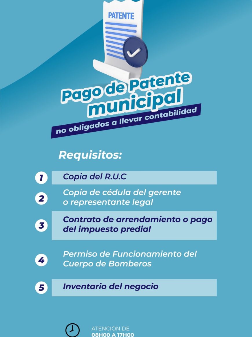 Si eres comerciante y no llevas contabilidad, cumple con el pago de tu Patente Municipal Tu aporte fortalece los servicios municipales y el orden comercial, construyendo un Muisne más próspero