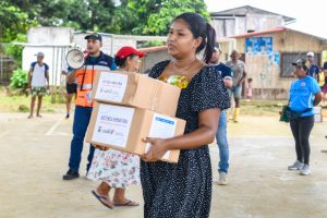 Gracias a la gestión de la alcaldesa Yuri Colorado, en coordinación con la Secretaría Nacional de Gestión de Riesgos y el apoyo del presidente Daniel Noboa, 135 familias de Sálima recibieron asistencia humanitaria ante la emergencia que enfrentaron.