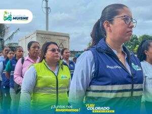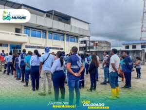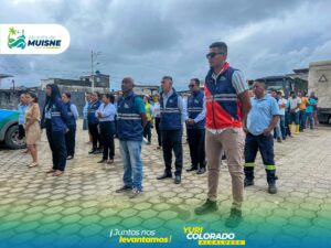 Con fervor cívico, empleados y trabajadores del Municipio de Muisne participaron en la acostumbrada hora cívica, una tradición retomada durante la administración de la alcaldesa Yuri Colorado Márquez.
