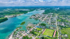 Desde las alturas, se despliega ante nuestros ojos el encanto del perfil costero de la ciudad, con sus playas de arena blanca abrazadas por la exuberancia de las palmeras.
