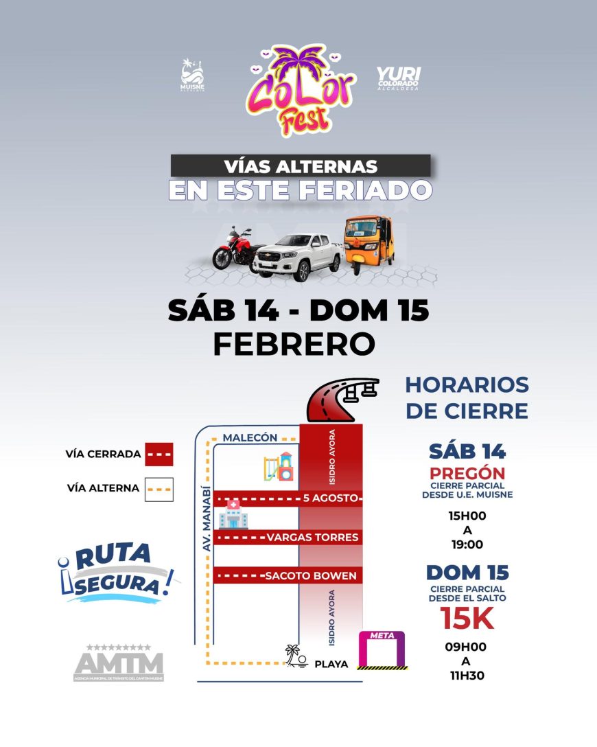 Este sábado 14 y domingo 15 de febrero se aplicarán cierres temporales en varias calles por el desarrollo de las actividades oficiales.