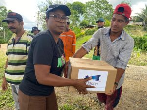 • El equipo humano de la alcaldía, con el apoyo de Flota Petrolera Ecuatoriana EP Flopec se hicieron presentes en el Recinto el Pailón, llevando kits humanitarios a las familias afectadas.