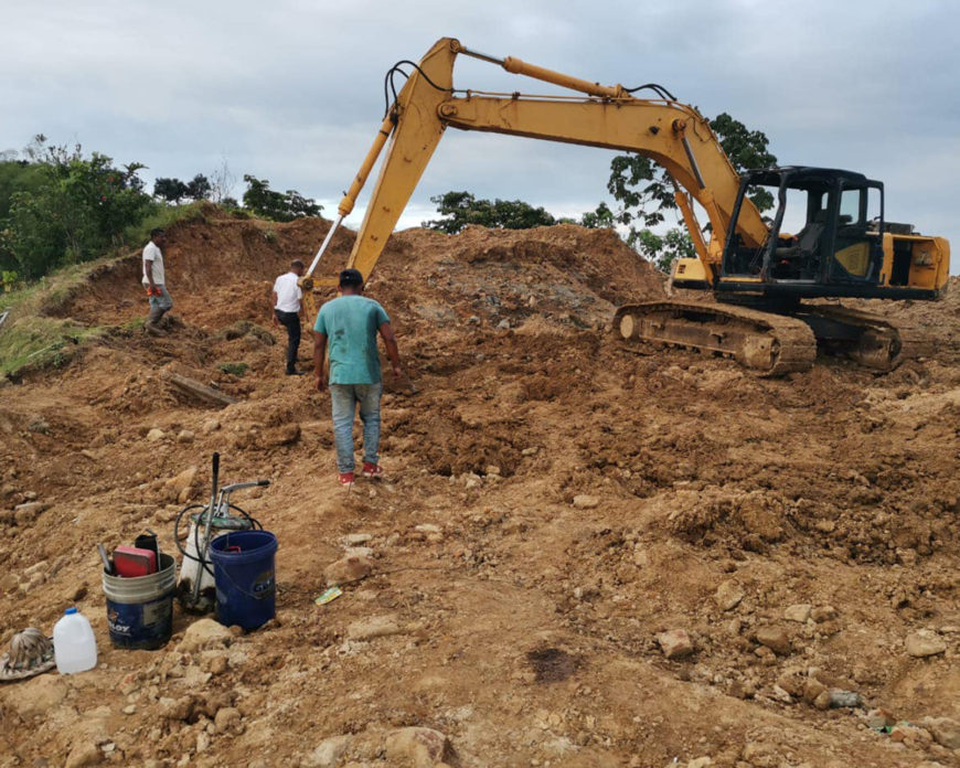 El GAD de Muisne en coordinación del GAD de Quingue, realizan trabajos de desbancamientos en terrenos.