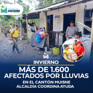 Toda la asistencia humanitaria se coordina a través de la Secretaría de Gestión de Riesgos (SGR), destinada a las poblaciones afectadas en las parroquias San Gregorio, Sálima y San José de Chamanga. Nuestra alcaldesa Yuri Colorado Márquez lidera las labores administrativas y de campo, agradeciendo a la sociedad civil por su solidaridad mediante la entrega de agua, ropa y alimentos. Muisne ha experimentado siete emergencias relacionadas con las lluvias durante la presente administración municipal, lo que representa un desafío para las finanzas municipales.