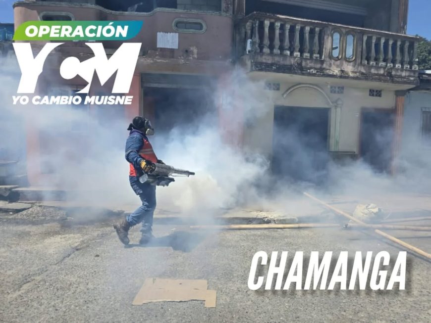 En este momento continuamos con la intervención en Chamanga, dentro del plan Yo Cambio Muisne. Nuestras cuadrillas realizan la fumigación de la parroquia para evitar enfermedades provocadas por mosquitos.