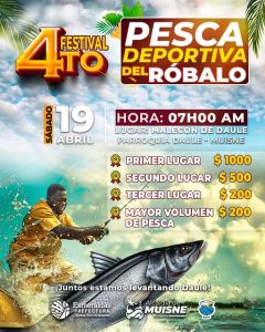 📅 Este sábado 19 de abril te esperamos en el 4to Festival de Pesca Deportiva del Róbalo en Daule.