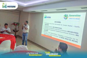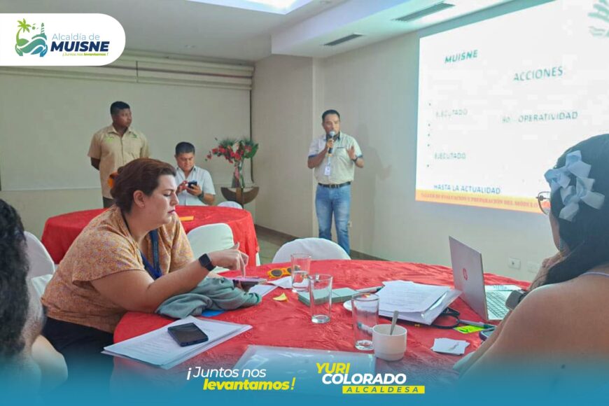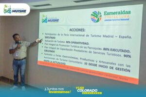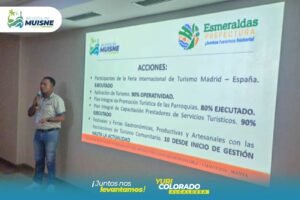 Durante el evento, se realizó también una feria interinstitucional donde los representantes de Muisne exhibieron avances significativos en Turismo y Desarrollo Productivo a través de material audiovisual.