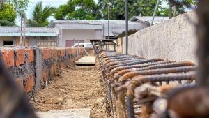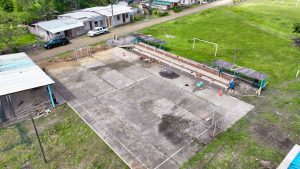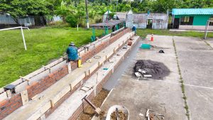 La construcción del graderío y su cubierta para la cancha de uso múltiple en el recinto El Limón, parroquia Sálima, registra un 90 % de avance.
