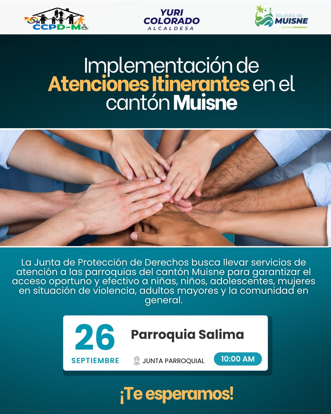 Te esperamos desde las 10h00 el viernes 26 de septiembre en la Junta Parroquial de Salima. Queremos llegar a ti con servicios de atención oportunos y efectivos.
