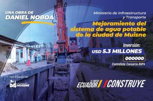 Gracias al respaldo del presidente Daniel Noboa Azin, el Ministerio de Infraestructura y Transporte – Ecuador. el Comité de la Reconstrucción y la gestión de la alcaldesa Yuri Colorado Márquez, sigue adelante la obra de mejoramiento del sistema de agua potable de Muisne.